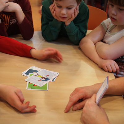 少し小さな子どもたちと哲学するための少し大きなサイズのカードです。大人の進行役が入ります。