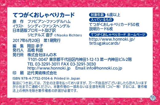 入っているもの:てつがくおしゃべりカード50枚、説明カード6枚