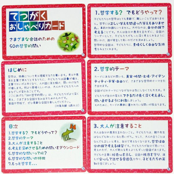 他の画像を見る てつがくおしゃべりカード(日本語版) お支払い方法カード:書籍パターン 送料について:書籍パターン 配送方法:書籍パターン 返品ルール:書籍パターン ¥ 1,980 税込 子どもたちの考える力を引き出す。 自由に考え、表現する力が身につく。 対話することの楽しさを知る。 カートに入れる お気に入りに登録する